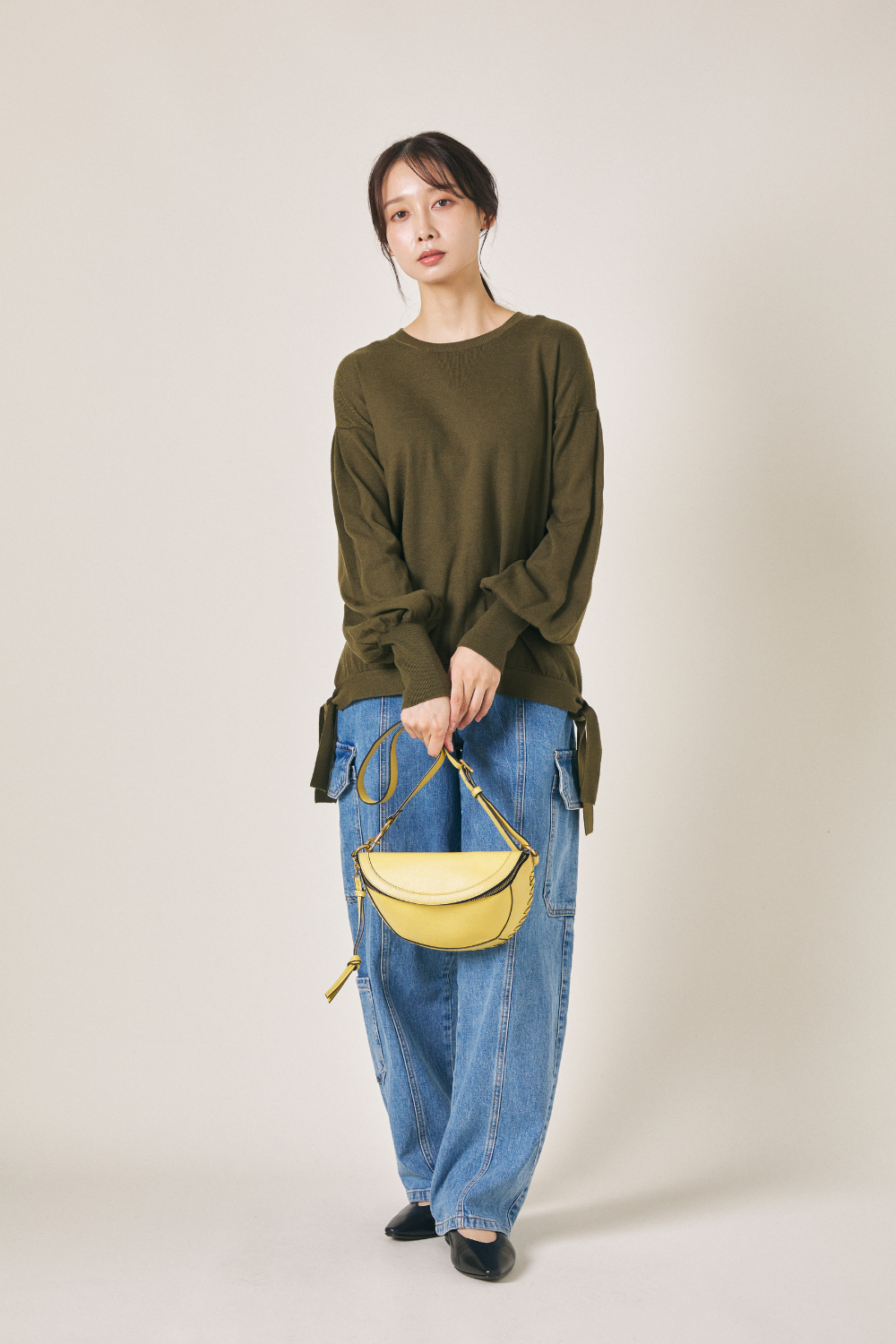 この時期にアウターを持たずに身軽に出かけるなら、薄手のニットをチョイス。レリル(lelill)のニットはサイドのリボンとバルーン袖デザインで、ワンツーコーデもシンプルになりすぎずメリハリの効いた印象に。デニムパンツを合わせて、カジュアルに着こなして。