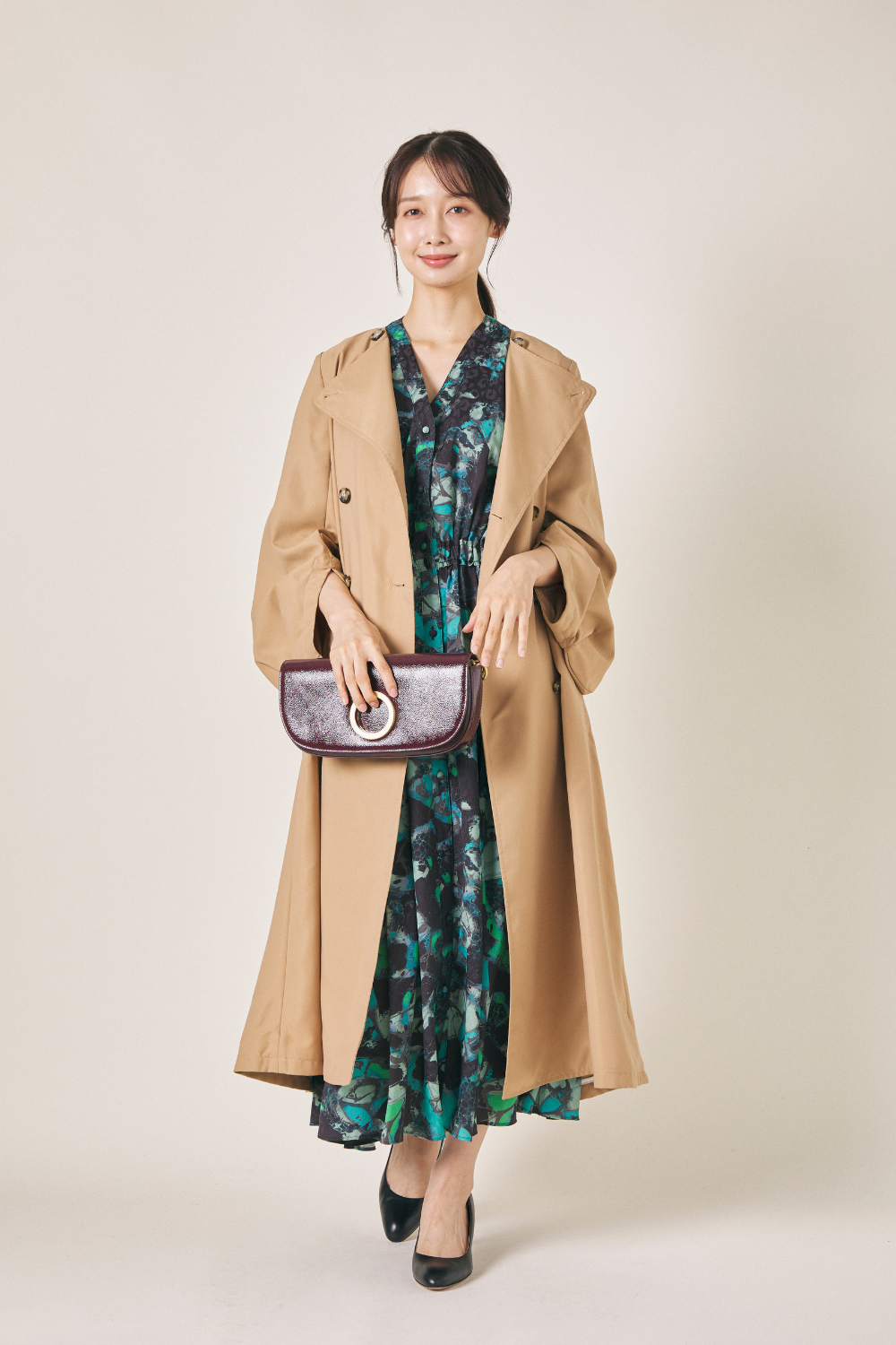 季節の変わり目の定番アウター・トレンチコートは、羽織るだけでエレガントな“大人顔”を演出してくれる優秀アイテム。トロワズィエムチャコ(troisieme chaco)のトレンチコートは、シワになりにくい素材感と、ドレスのような華やかさが魅力。写真のようなエレガントなスタイルにもマッチします。