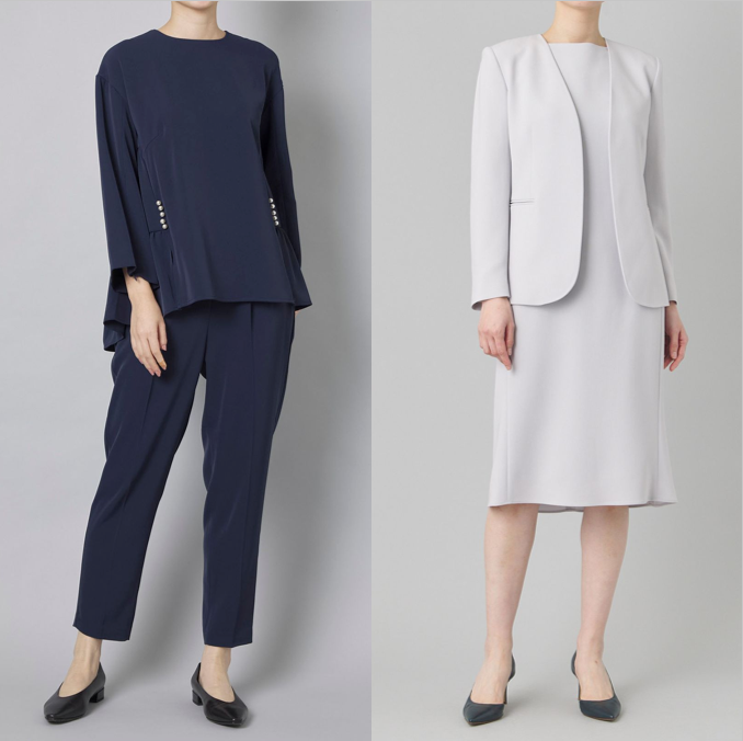 さらに近年は、ジャケットなしでも上品に見える“きれいめセットアップ”にも注目が集まっています。アナザーアドレスでは、レンタルチケット1枚で借りられる【ブラウス+パンツのセットアップ】もご用意。セレモニーシーンにぴったりの装いを、ぜひチェックしてみてください。