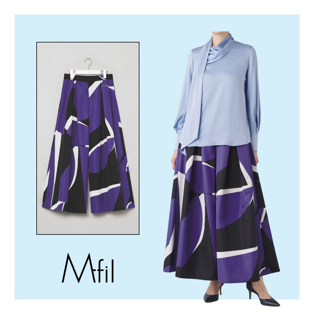 ハリのある素材で仕立てた構築的なブラウスや、光沢感のある素材を使ったボトムスなど、コーディネートの主役になる華やかなアイテムが揃うエムフィル(M・fil)。なかでも人気を集めるのが、ウエストゴム仕様のパンツです。とにかくラクなのに、センタープレス入りできれいに見えるので、きちんと感と快適さを両立したいオフィスシーンにぴったり。