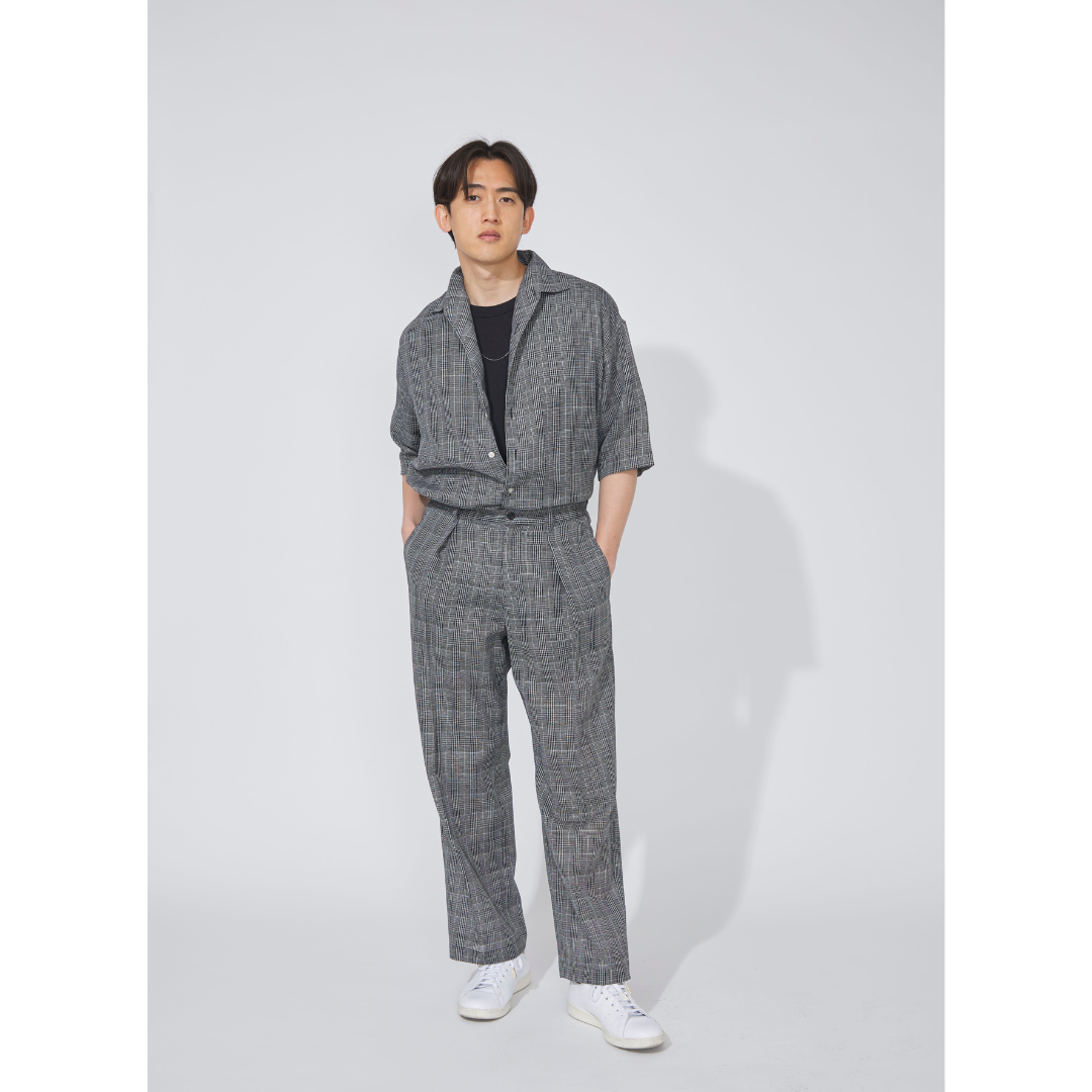 グレンチェック柄が目を引くキクスドキュメント(KICS DOCUMENT.)のセットアップ。セットアップの持つきれいめな雰囲気をチェック柄がカジュアルダウンさせてくれます。モノトーンベースであるため、どこか大人っぽく洗練された印象が感じられる点も◎。