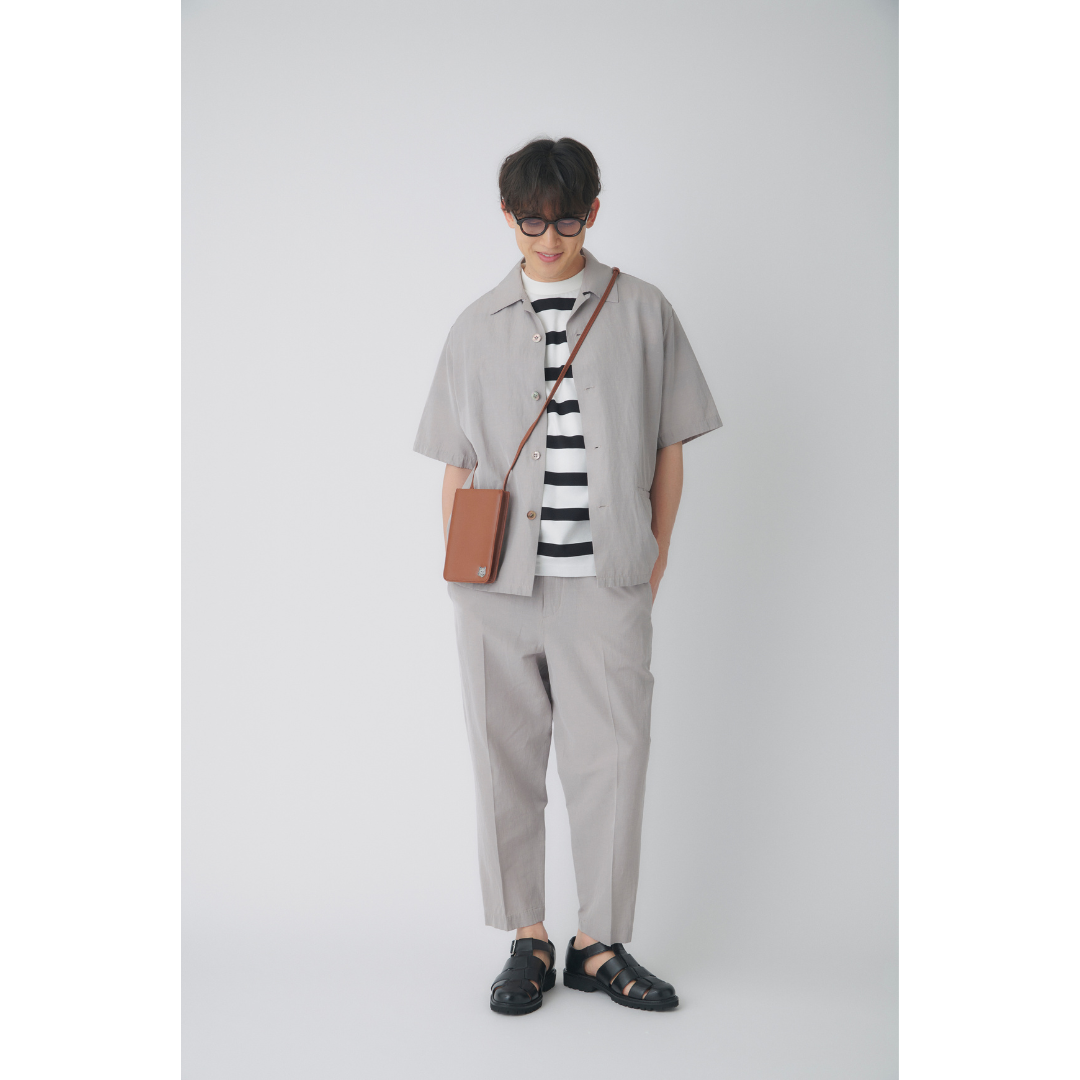 アトリエベトン(ATELIER BÉTON)のセットアップは、軽量で通気性のいい素材を使用しているので、暑さの厳しい夏の時季でも着心地抜群。ライトグレーの落ちついたカラーと、ほどよくゆとりのあるシルエットが、こなれ感のある雰囲気に仕上げてくれます。