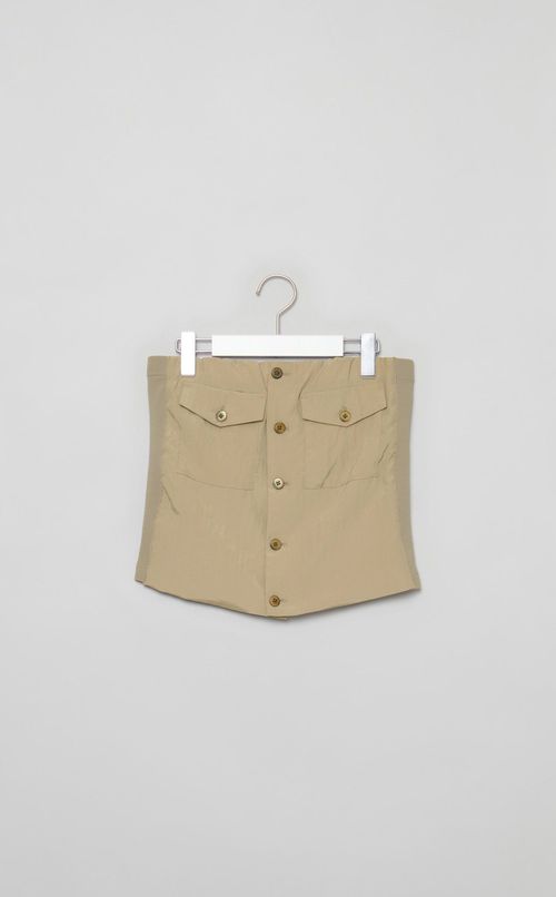 ラストは、トレンドアイテムとして今季注目を集めるビスチェをご紹介。08サーカス(08sircus)のビスチェは、フロントはきちんと感のあるボタン仕様、バックはリブ素材でフィット感があり、デザイン性も着心地も◎。