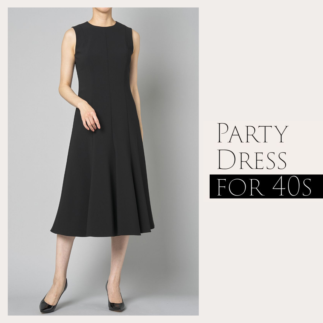 ここからは、ご紹介したおすすめアイテムを使ったお呼ばれドレスコーデをご紹介。40代では、「お呼ばれする立場」も服装選びの大切なポイントなので、親族・友人・仕事関係の3パターンに分けて詳しく解説します。