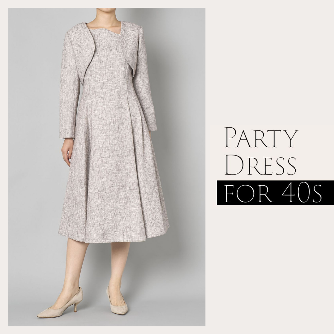 40代女性が意識したいのは、派手すぎず、でも地味すぎない“上品な華やかさ”。 落ち着いた色合いのドレスや、程よい厚みの上質な素材のドレスを選ぶことで、洗練されたエレガントな雰囲気を演出できます。