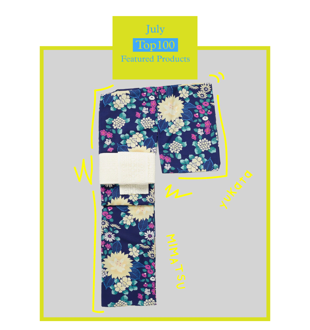 2024年夏からアナザーアドレスでの取り扱いがスタートした、浴衣もランキング入り。こちらは濃紺の地に咲き誇る百花柄が、凛とした美しさを引き立てる三松の浴衣です。